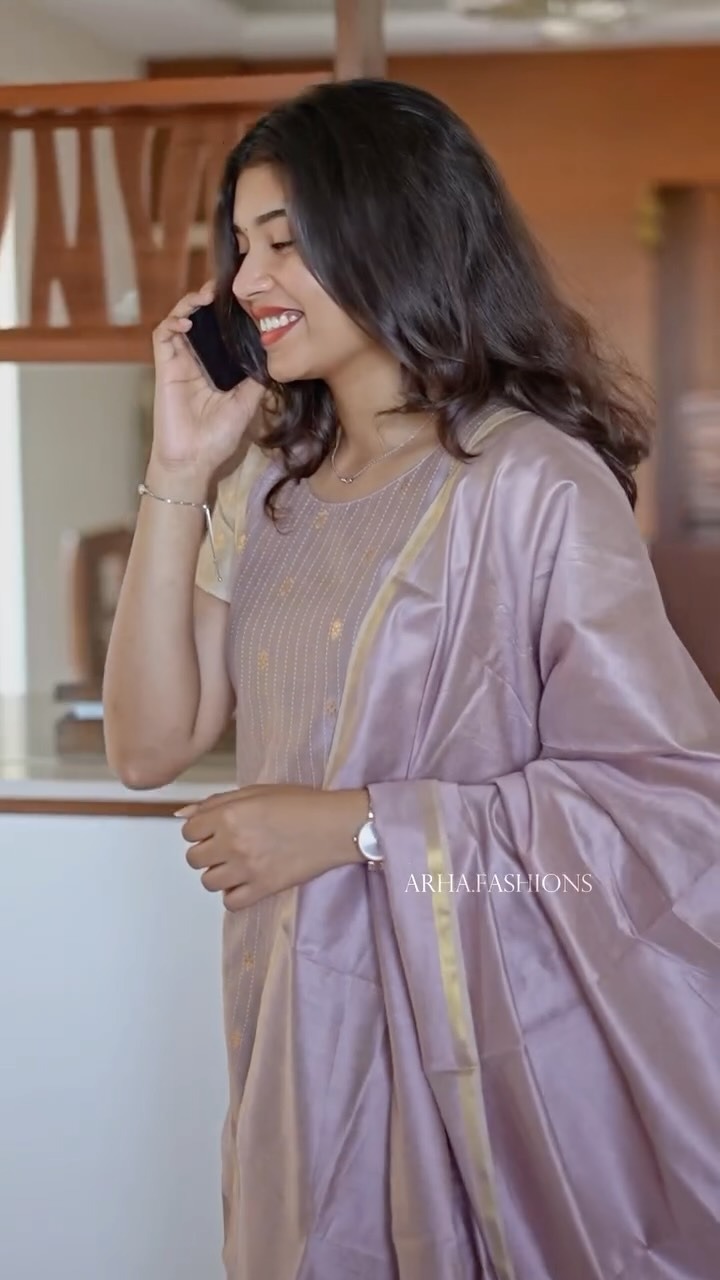 An elegant three piece set featuring a kurti with delicate petal sleeves, matching straight pants with pockets, and a graceful tussar silk dupatta.Comes with cotton lining.