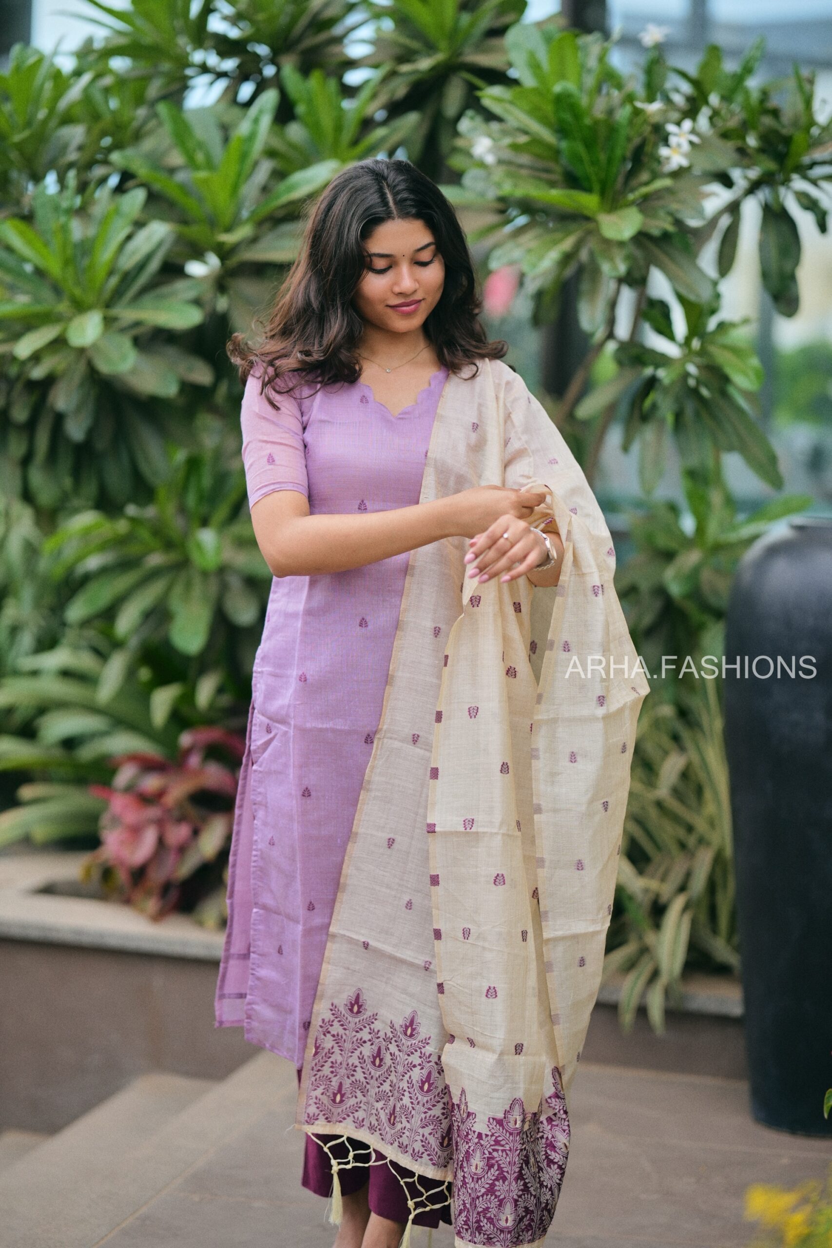 A refined blend of comfort and elegance, this premium fancy cotton kurti set is designed for effortless everyday style. The kurti features delicate butta detailing along a beautifully finished scalloped neckline and elbow-length sleeves, adding a subtle touch of sophistication.