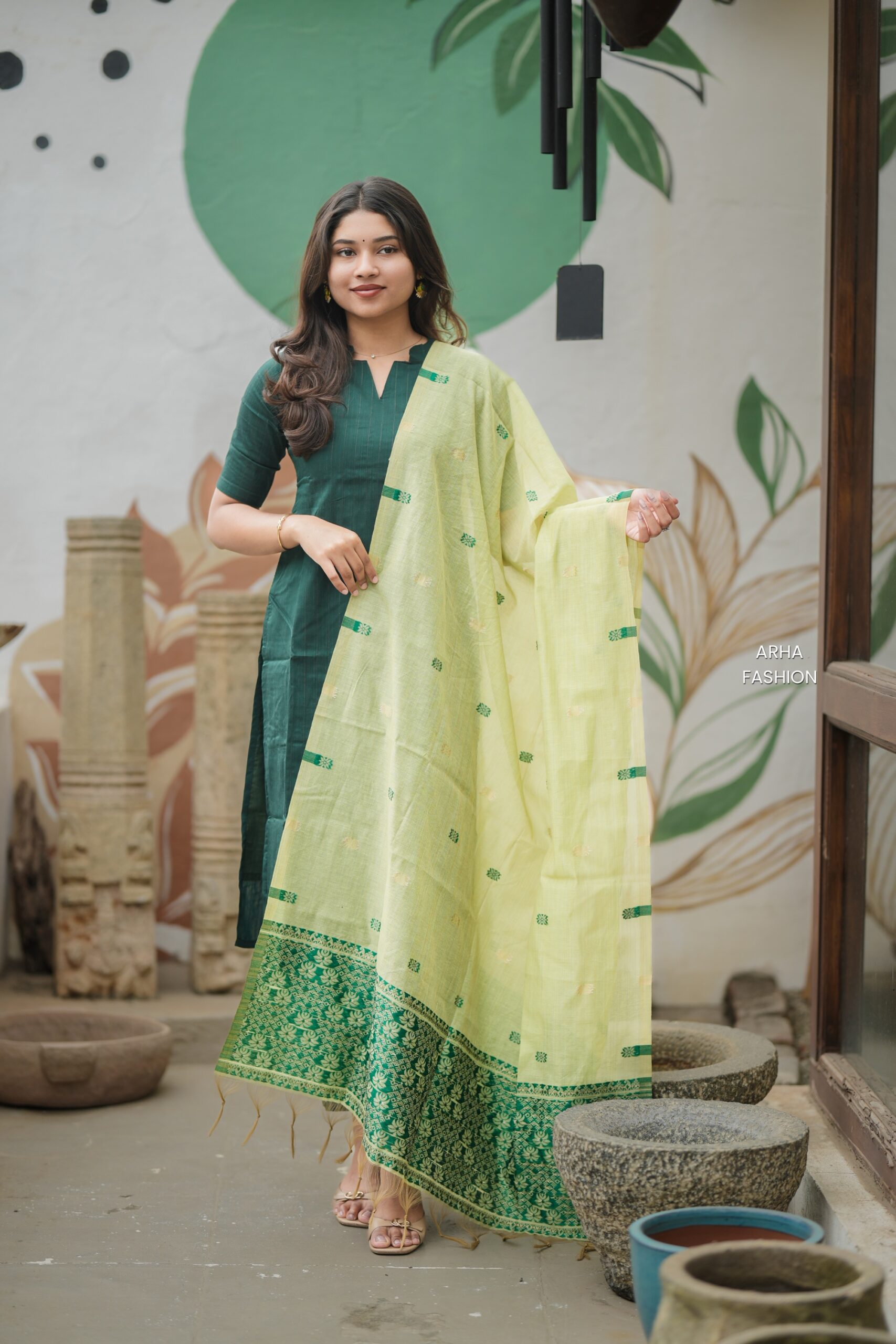 Sarika reflects quiet sophistication through its rich textures and balanced contrasts. Crafted in lustrous raw silk, the kurti is paired with matching straight pants and elevated by a beautifully woven jacquard dupatta, finished with a delicate floral border. A timeless ensemble that blends structure, softness, and understated elegance.